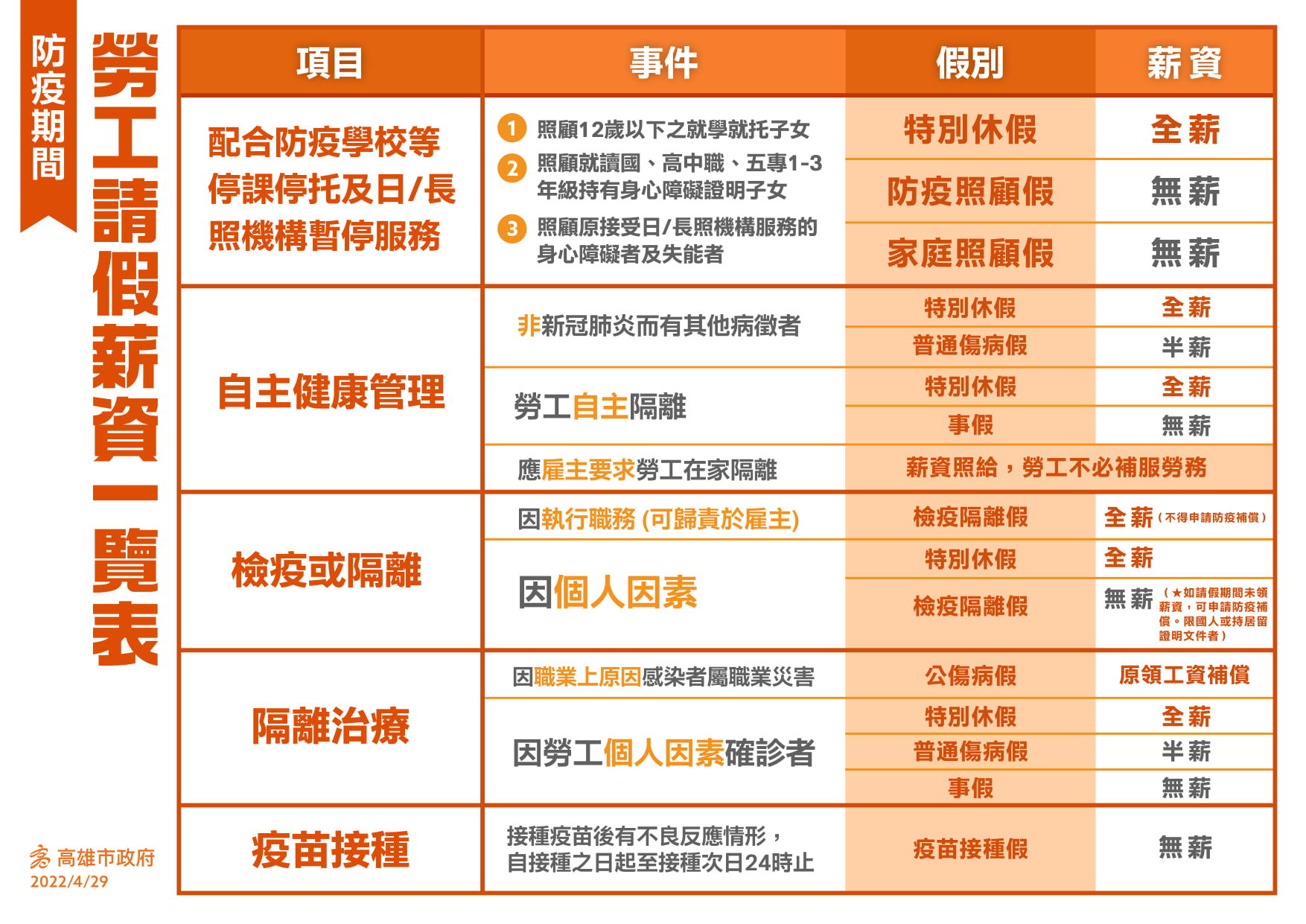 防疫期間勞工請假薪資一覽表
